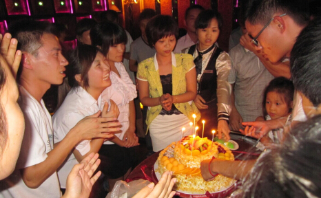 大家一起插蜡烛、点蜡烛、齐唱生日歌,并许下自己的生日愿望。