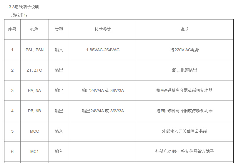 磁粉制动器刹车器接线端子说明