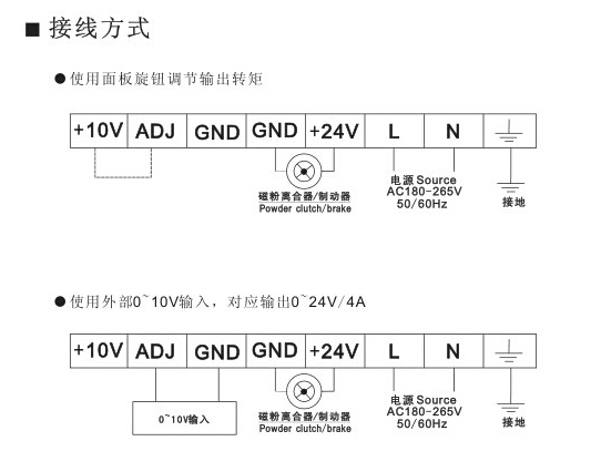 张力控制器可外部信号控制(0~10V) 控制方式为脉宽调制切换式调节系统。