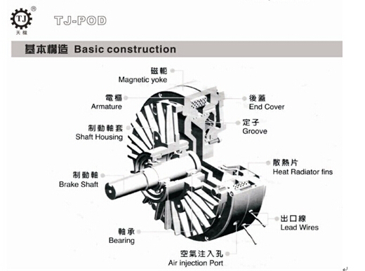 东莞天机传动生产的磁粉制动器刹车器运行结构图: