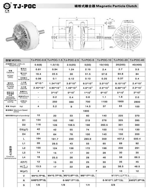 根据东莞天机传动磁粉离合器的型号规格表,选择适合自己使用的型号规格。