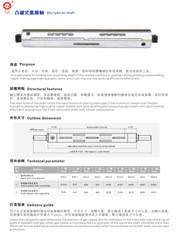 通长键气胀轴,键条式气胀轴,悬臂式气涨轴