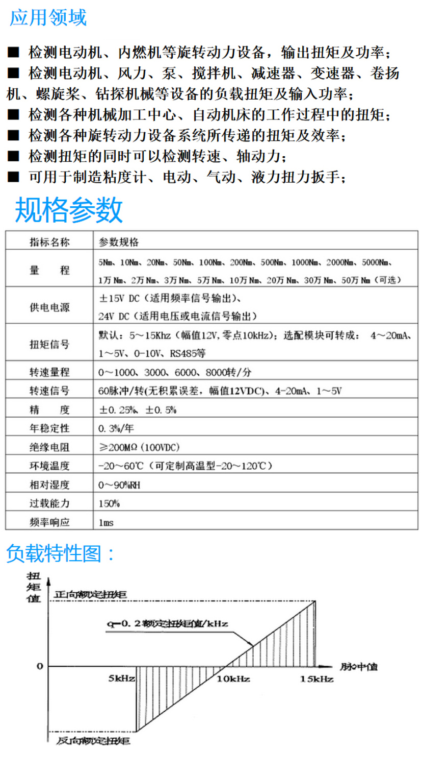 以下是扭矩传感器,动态扭矩传感器,非接触扭矩传感器规格参数